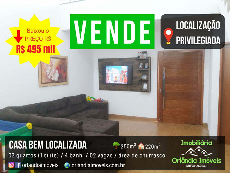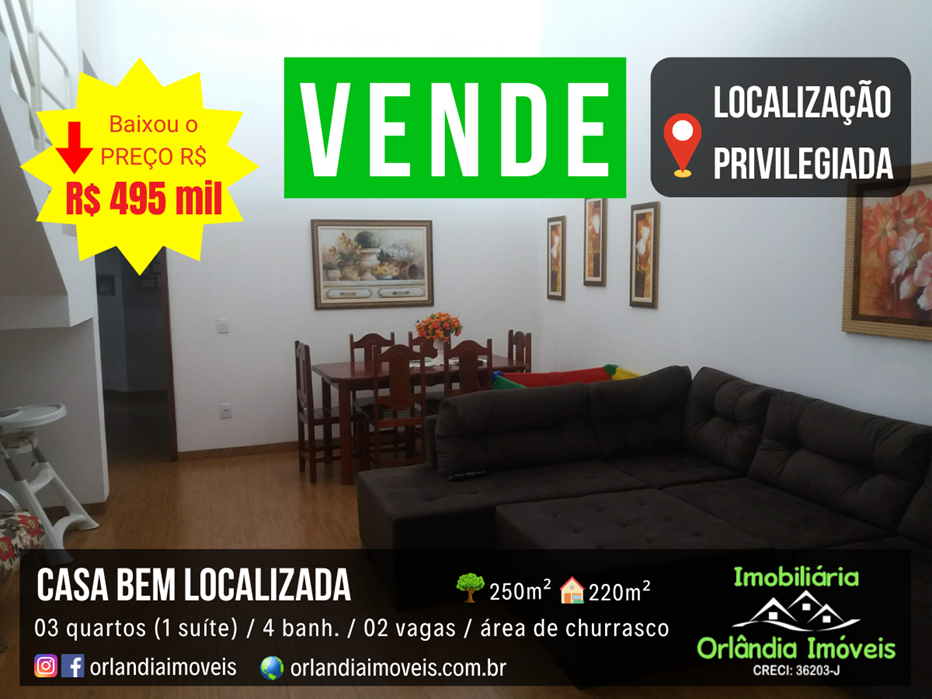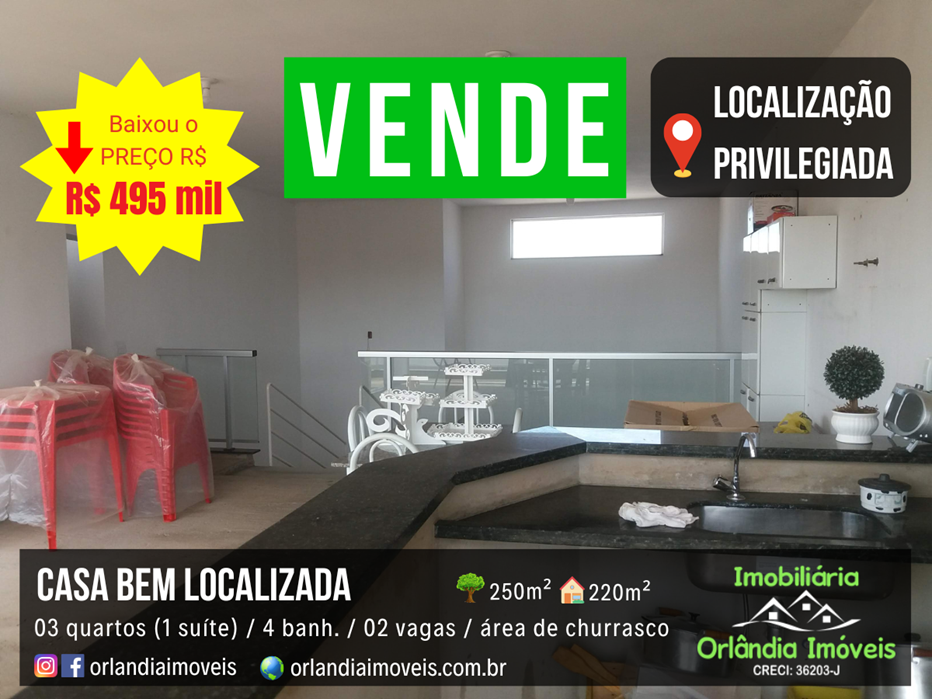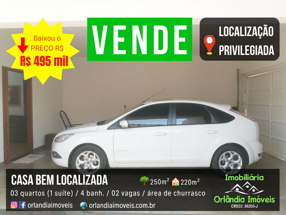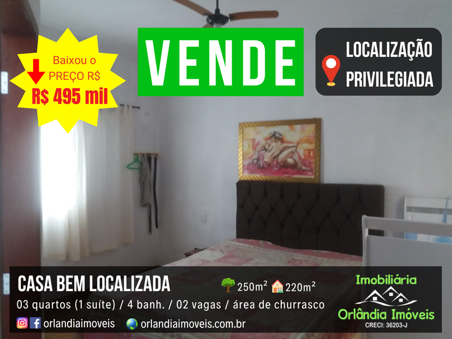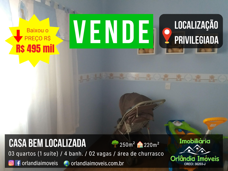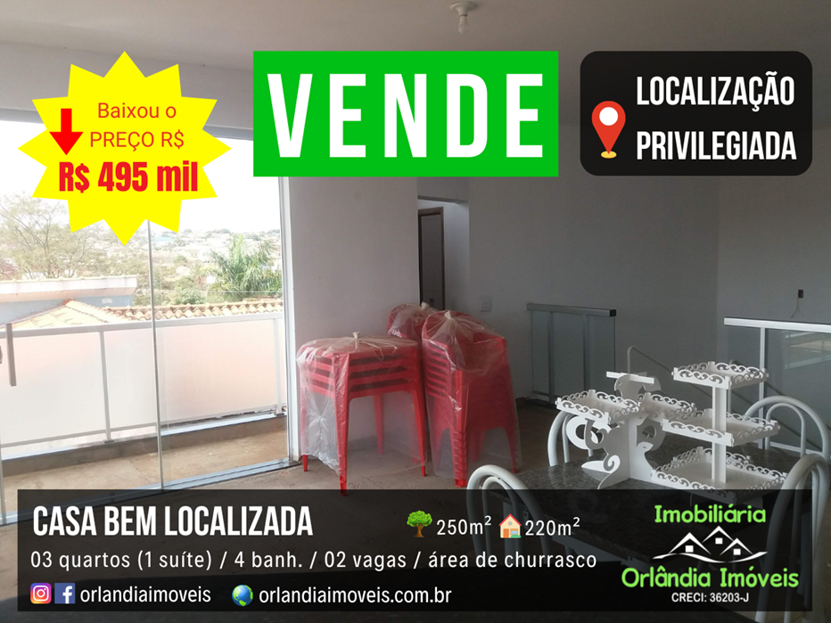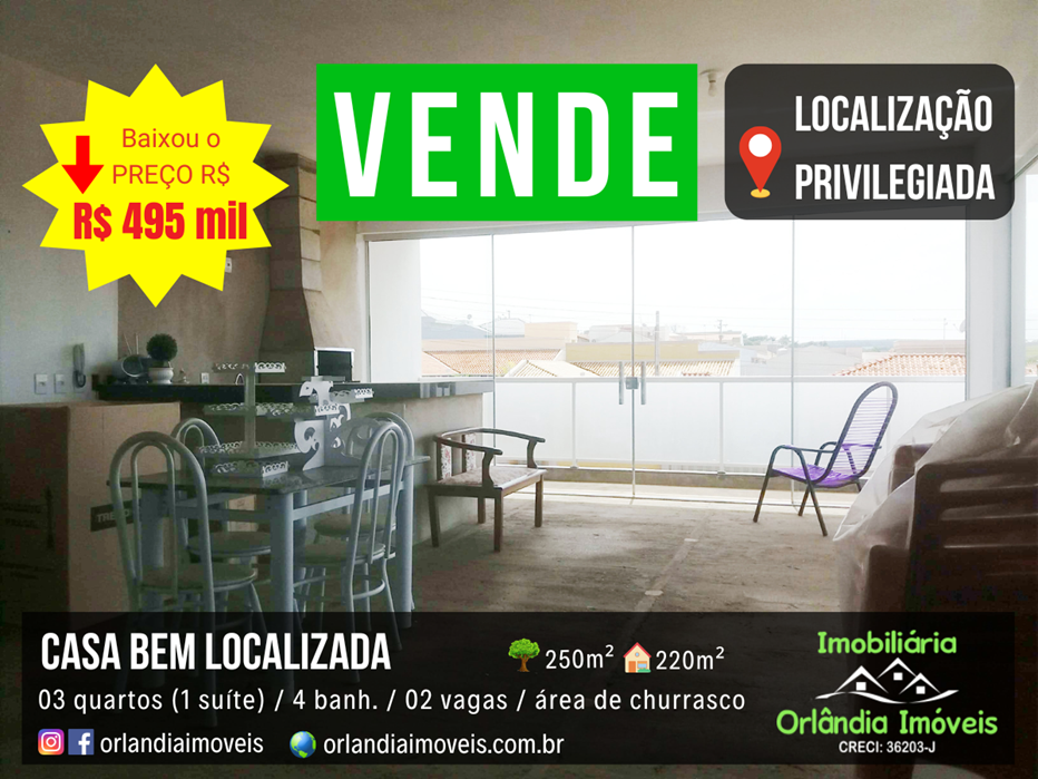 Casa em Orlândia, bem localizada. Toda de laje. Casa muito bem dividida com lavabo, sala 02 ambientes grandes, área de churrasco no piso superior e uma vista maravilhosa da sacada.