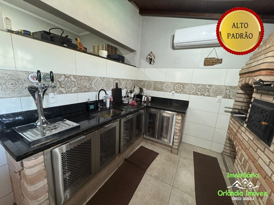 - área de churasco: churrasqueira, fogão a lenha e chopeira