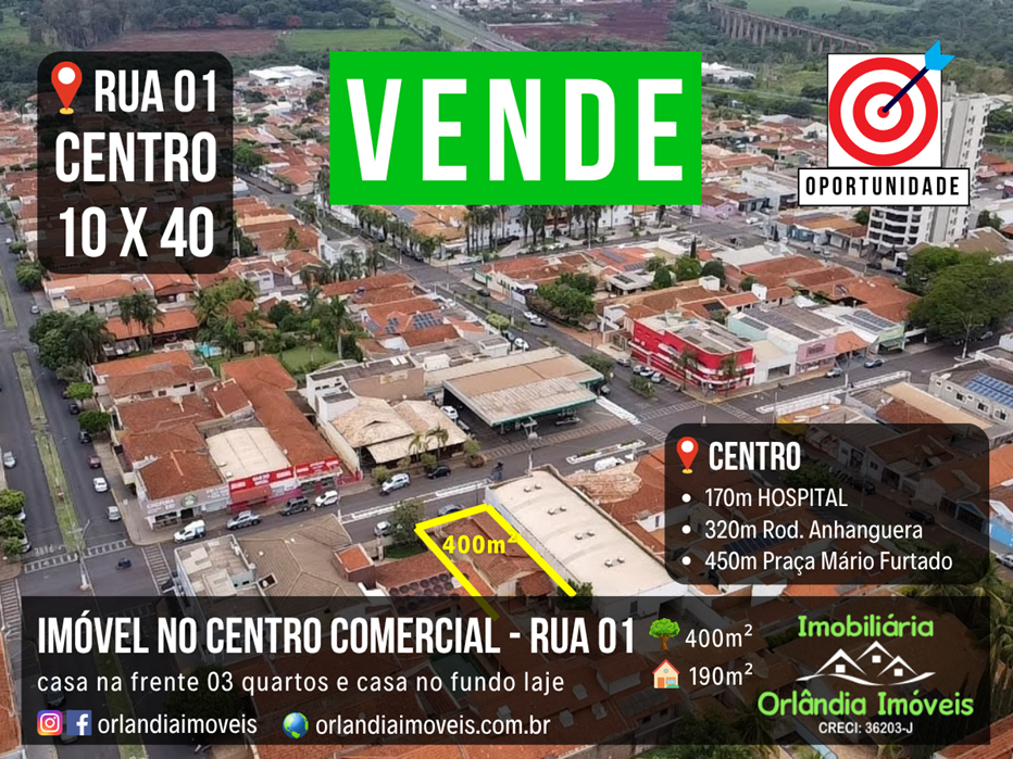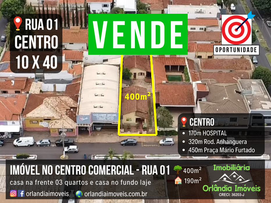 - Melhor Localização Comercial em Orlândia. Rua 01. Rua mais movimentada da cidade, dia e noite. Este imóvel está próximo de bares, choperias, restaurantes, padarias, postos de combustíveis, sorveterias, mercados, hospital e muito mais.